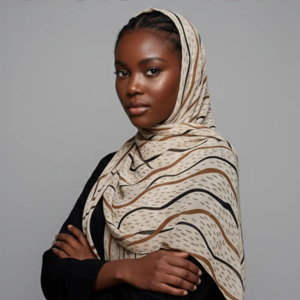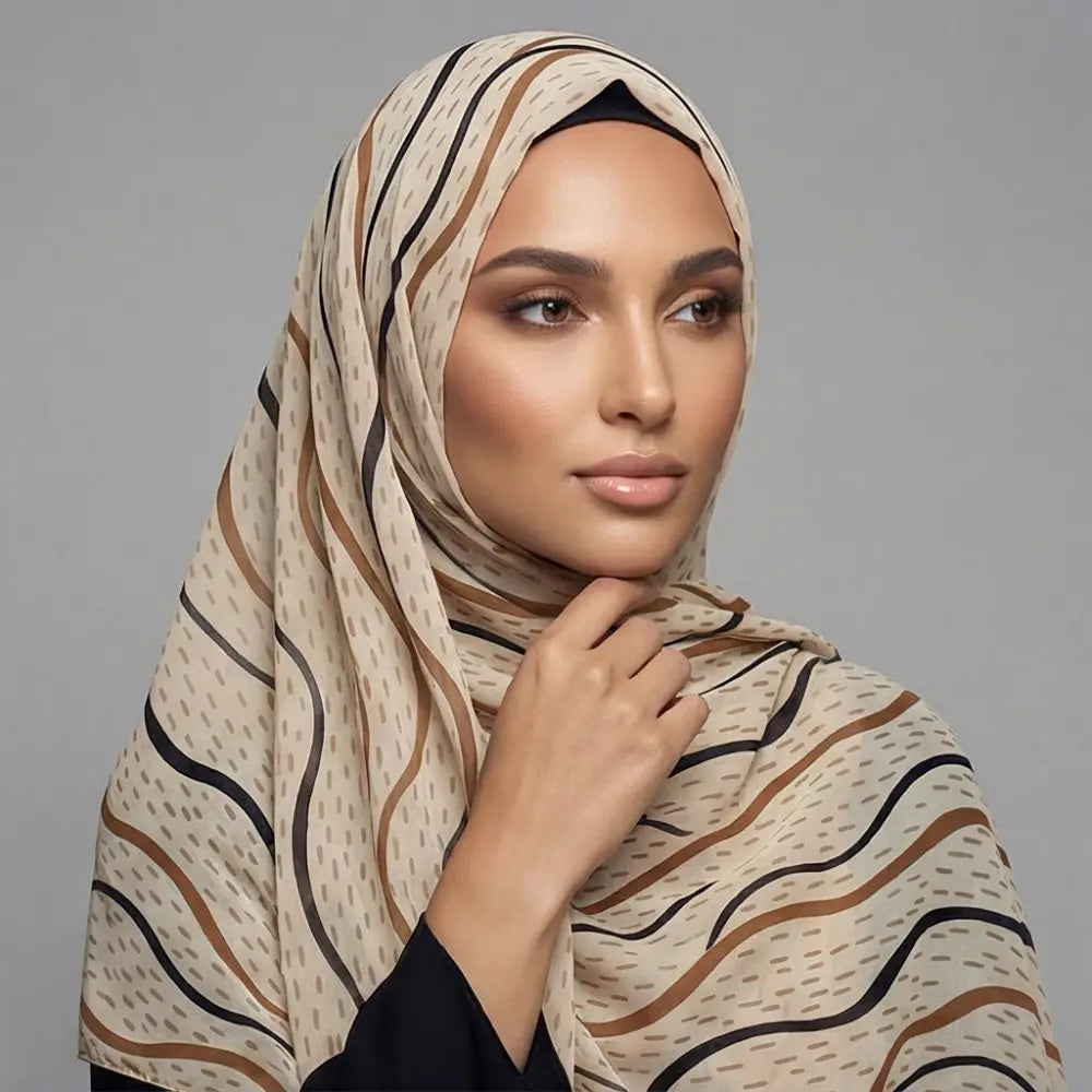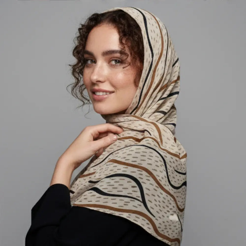 Inspired by warm sand tones and flowing wave patterns, crafted for modern modest elegance.